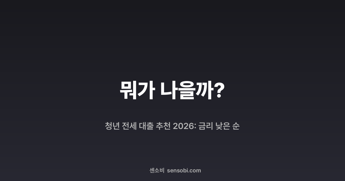 청년 전세 대출 추천 2026: 금리 낮은 순으로 솔직하게 비교했습니다
